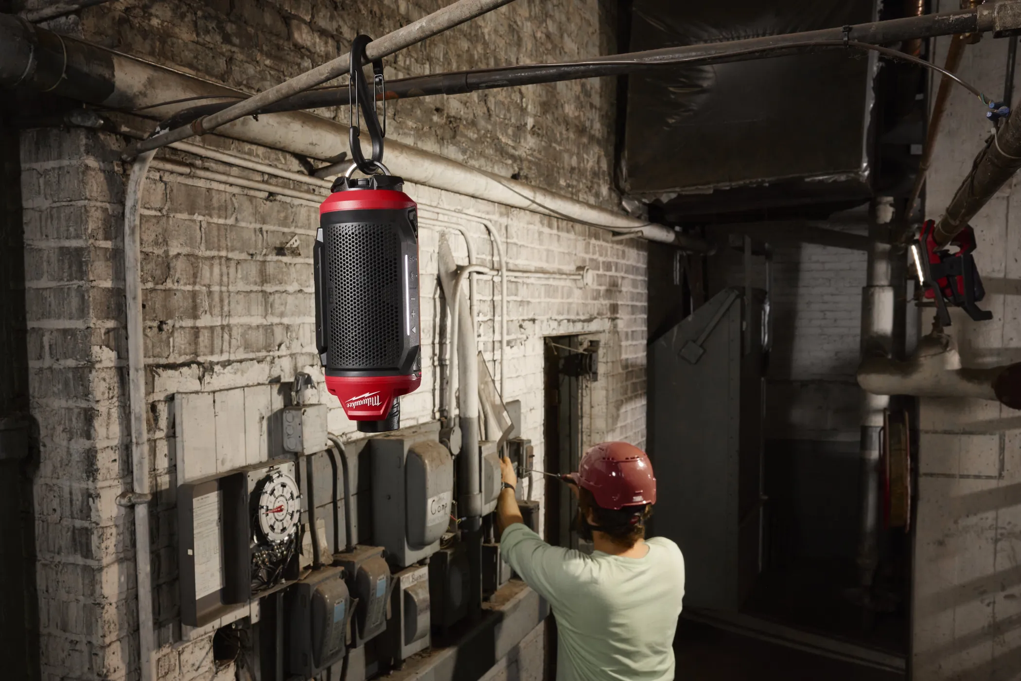 - Milwaukee M12 SPEJSG2 — это профессиональный Bluetooth-динамик, разработанный специально для использования на строительных и монтажных площадках.